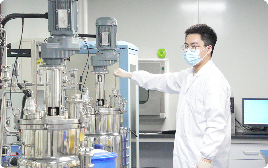 由發(fā)酵實(shí)驗(yàn)室、檢測實(shí)驗(yàn)室組成,配置有5L-50L-100L-1000L的不同體積的發(fā)酵罐,以及多種精密檢測儀器,進(jìn)行從0-1-10的發(fā)酵工藝放大,為工業(yè)化生產(chǎn)蘡定基礎(chǔ)條件。